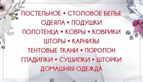 В нашем магазине "УютТекс" вы можете приобрести следующие товары: